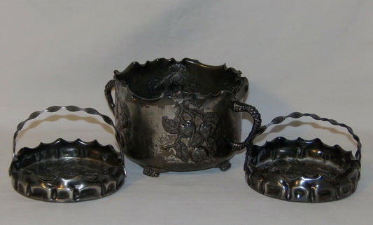 Antique Pairpoint Silverplate Baskets Quadruple Plate Repousse Baskets 3pc Set