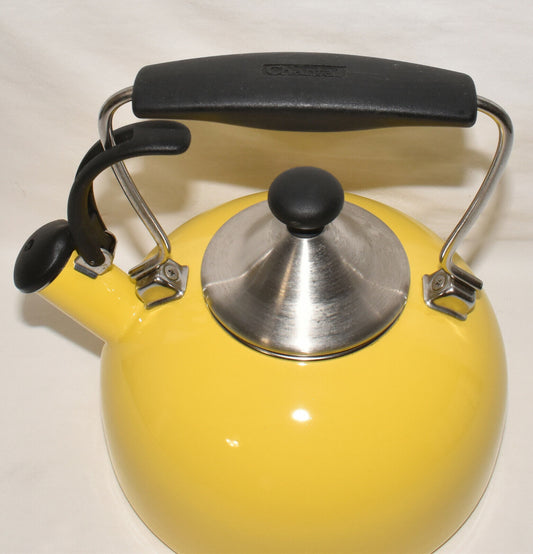 Chantal Canary Yellow Enamel Tea Kettle Water Boiler Metal Lid Blue Interior EUC