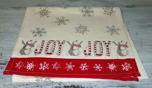Christmas Table Runner 56" Joy Snowflake Snowman Red Khaki Silver Table Decor