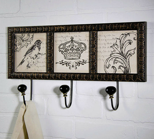 Framed Burlap Artwork 3 Hook Wall Plaque Wall Decor French Country Home Accents