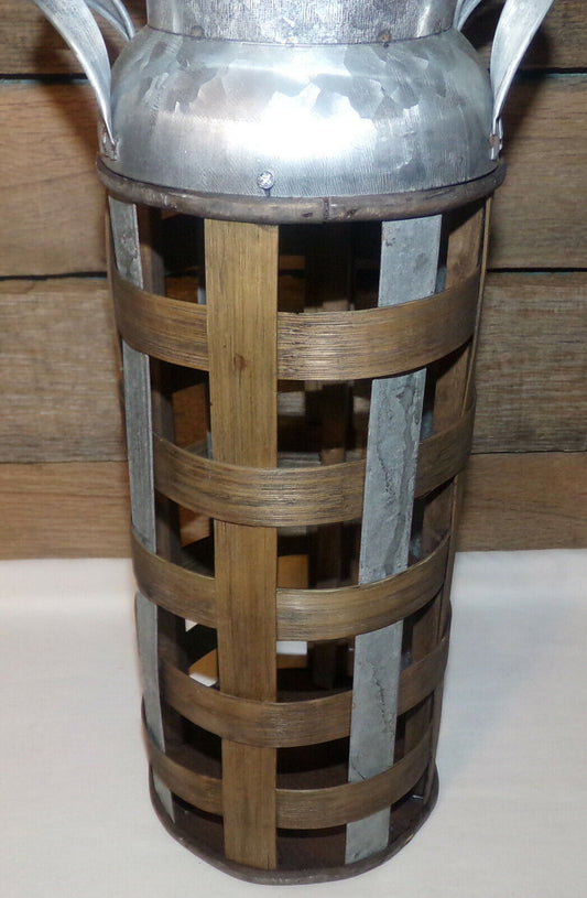 Galvanized Metal & Wood Milk Can Farmhouse Ranch Country Metal Wood Milk Can New