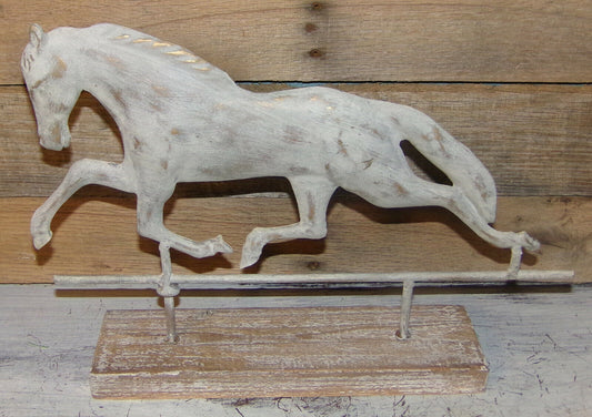 Farmhouse Weathervane Weather Vane Horse on Wooden Base Rustic White One-Sided