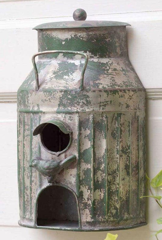 Rustic Green Milk Can Birdhouse Galvanized Metal Garden BirdFeeder Birdhouse New