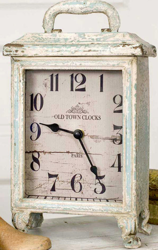Rustic Carriage Clock Footed Mantel Shelf Clock Farmhouse French Country Cottage