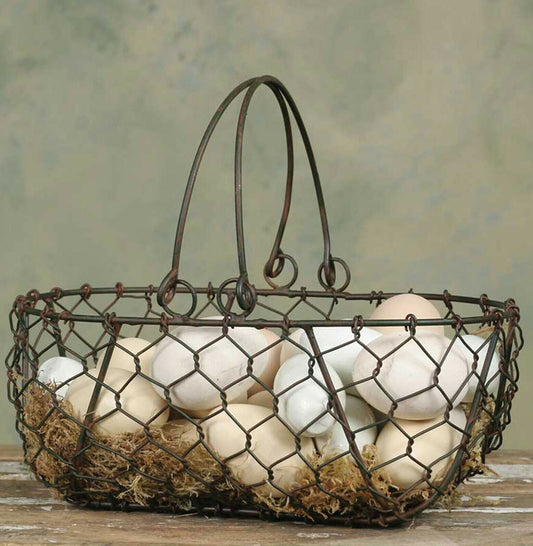 Rustic Farmhouse Gathering Basket Chicken Wire Rusty 10" Basket w Double Handles