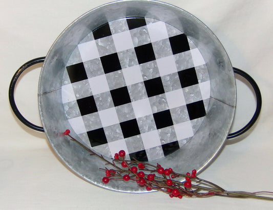Serving Tray Black White Buffalo Check Galvanized Metal Double Handle Tray New