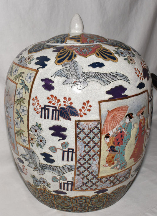 Late 19th/Early 20th Century Antique Japanese Porcelain Jar w Lid Hand Painted