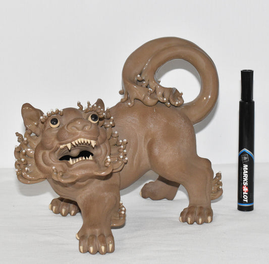 Antique Chinese Shiwan Stoneware Foo Dog Fu Lion Shiwan Guardian Lion Signed