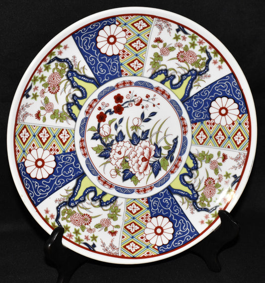 Japanese Imari Ware 10.5" Medallion Plate with Floral Motif Blue Red Green White