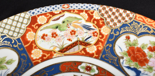 Vintage Japanese Arita 9.5" Medallion Plate w Birds & Floral Cartouches Marked
