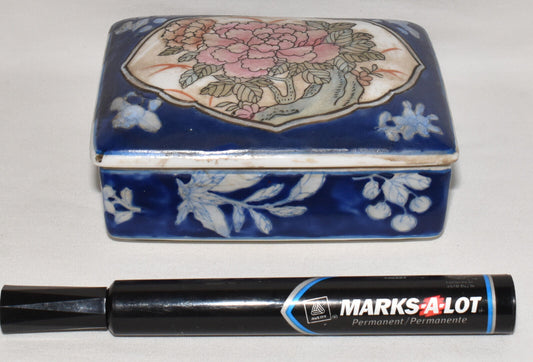 Mid/Late 20th Century Chinese Porcelain Trinket Box Hand Painted Floral Box Lid
