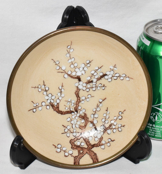 Vintage Japanese Brass over Porcelain Sakura Bowl 5.5" Bowl with Cherry Blossoms