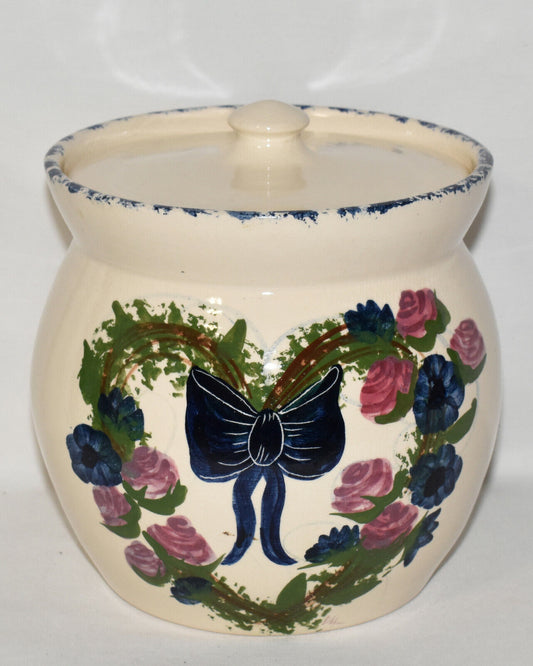 Vintage Hand Painted Pottery Cookie Jar Lidded Cow Creek Pottery Canister by Jose