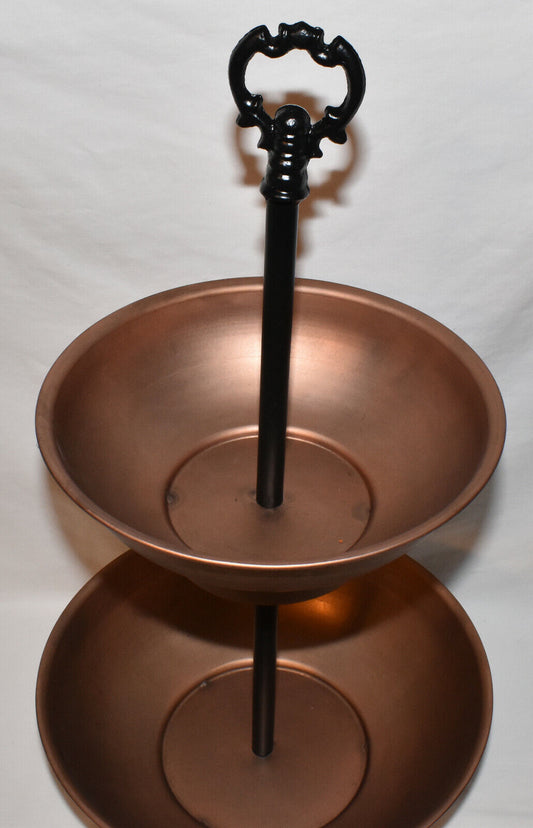 Two Tier Copper Tray Bowl 21" Table Stand Centerpiece Vintage Inspired Decor New