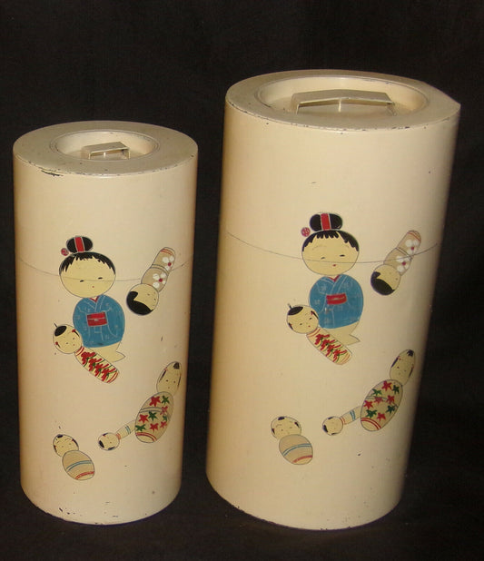 Antique Japanese Tin Canisters 4pc Set Kokeshi Doll Nesting Canisters Tins Smlxl