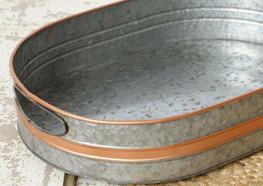 Extra Large 15" Tray Bin Caddy Basket Galvanized Metal w Copper Accent Handles