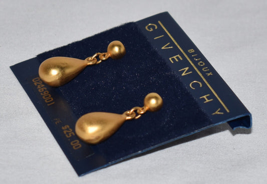 Vintage Givenchy Bijoux Paris Matte Gold 1" Teardrop Dangle Earrings Pierced New Old Stock
