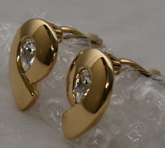Vintage Givenchy Bijoux Paris Gold & Crystal Logo G Clip-On Earrings Signed New Old Stock