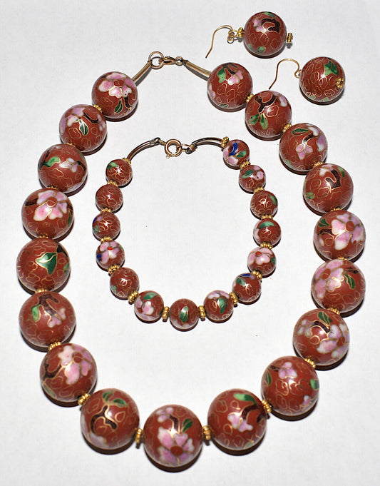 Vintage Murano Venetian 3pc Floral Glass Bead Necklace Set Bracelet Earrings