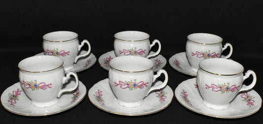 1990's Concordia Lesov Bohemian Fine Bone China Teacups Saucers 12pcs Org. Box
