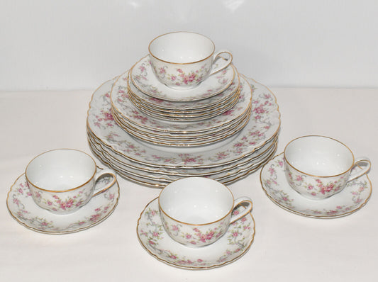Vintage Hutschenreuther Richelieu China 20pc Set Service for 4 Pink Floral Motif