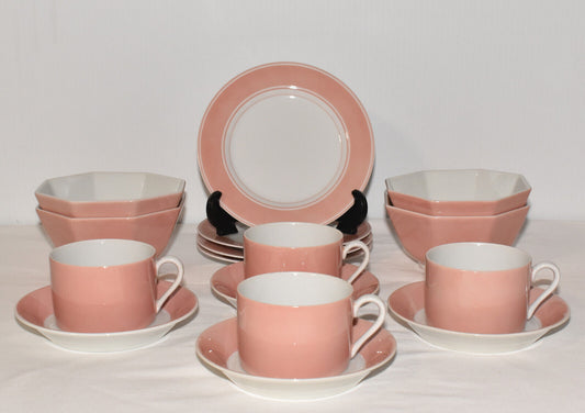 Vintage Fitz & Floyd Fine China Pink Rondelet Luncheon Set Plates Bowls Cups 16PCS