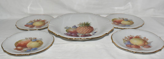 Antique Schumann Arzberg Germany Large Porcelain Serving Bowl Side Plates 5PCS