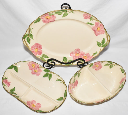 Franciscan Desert Rose Serving Pieces 14" Platter 2-Part Veggie Bowl 3-Part Tray
