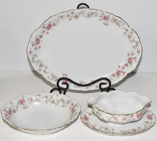 Vintage Hutschenreuther Richelieu China 3pc Hostess Set Platter Bowl Gravy Boat Mint