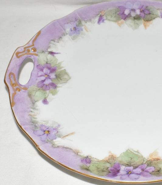 Antique German Serving Platter Hand Painted Porcelain Platter Tab Handles Signed