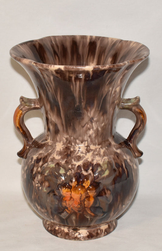 Vintage Jasba Keramik Pottery Vase Brown 10" Drip Glaze Double Handled Vase Germany
