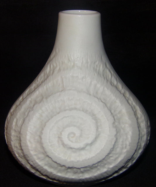Vintage Handmade White Op Art Wood Grain Fossil Vase Bavaria Germany Mid Century