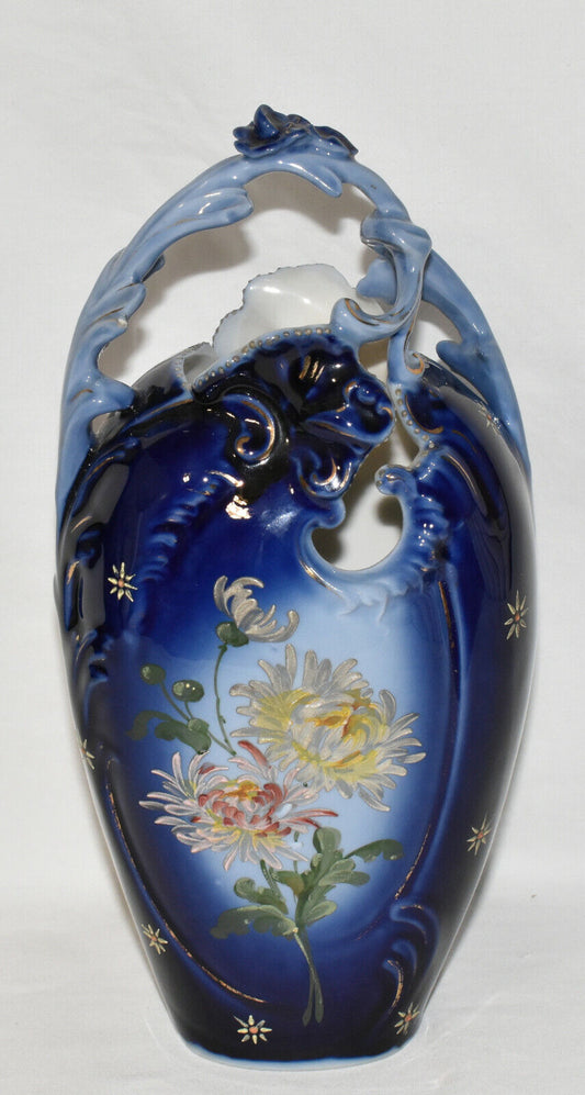 Vintage PMC France Limoges Porcelain Vase 11" Cobalt Blue Hand Decorated Floral Vase